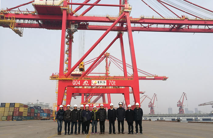 次日,在日照港客戶的大力支持下,考察團隨同我司工作人員前往日照港,參觀考察了我司為其定制生產的大型岸橋、場橋、糧食碼頭門座起重機等設備,使考察團對設備的現場使用情況有了更進一步了解。