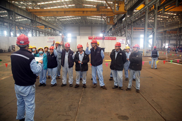 4月21日早上8點,隨著行車一聲鳴笛,以“練技能 比專業 促生產——向武漢總部廠慶60周年獻禮”海西重機第二屆行車工技能比武大賽在下料車間正式開始,來自全公司范圍內的28名行車工進行了激烈地同臺競技,最終韓彩鳳、張愛軍、趙合躍等6名選手脫穎而出分獲一、二、三等獎,其中來自英杰鋼構公司的韓彩鳳蟬聯兩屆冠軍。海西重機黨委委員、副總經理、工會主席代振華為獲勝者頒發了獲獎證書與獎品。