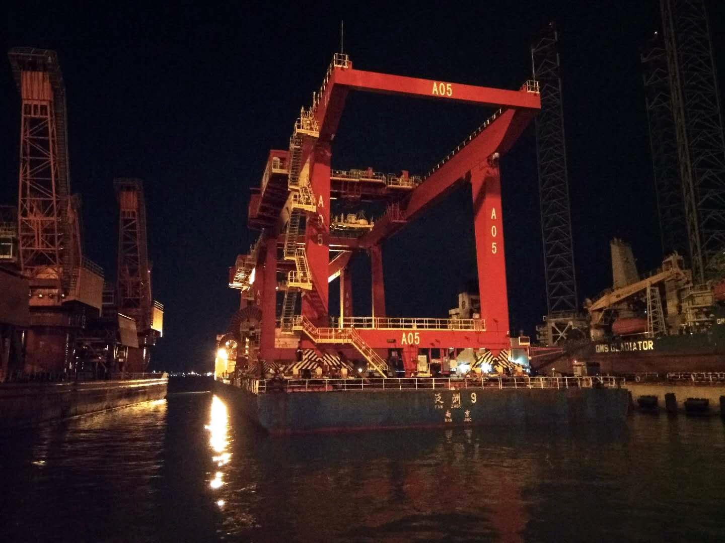 9月27日晚8點整,裝載兩臺自動化軌道式集裝箱龍門起重機(簡稱ARMG)的運輸船,伴隨著長長的汽笛聲緩緩駛離海西重機的碼頭,駛向日照港集裝箱發展有限公司的碼頭。日照港自動化項目是我司首次提供自動化碼頭整體解決方案的項目,也是國內首個真正意義的軌道吊自動化堆場項目。