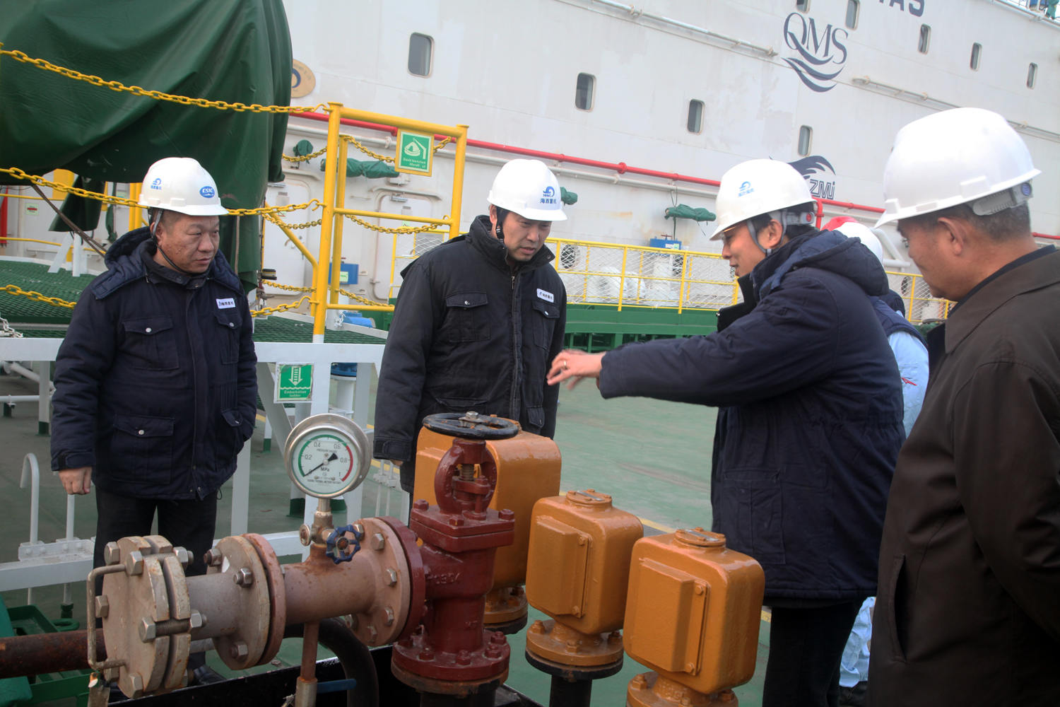 馮永強一行參觀了公司總裝碼頭,登上了公司建造的自升式海工平臺,仔細聽取了武漢總部黨委書記、董事長馬聚勇對武漢船機海西重機發展歷程、主營業務、戰略定位以及生產經營形勢等方面的介紹。