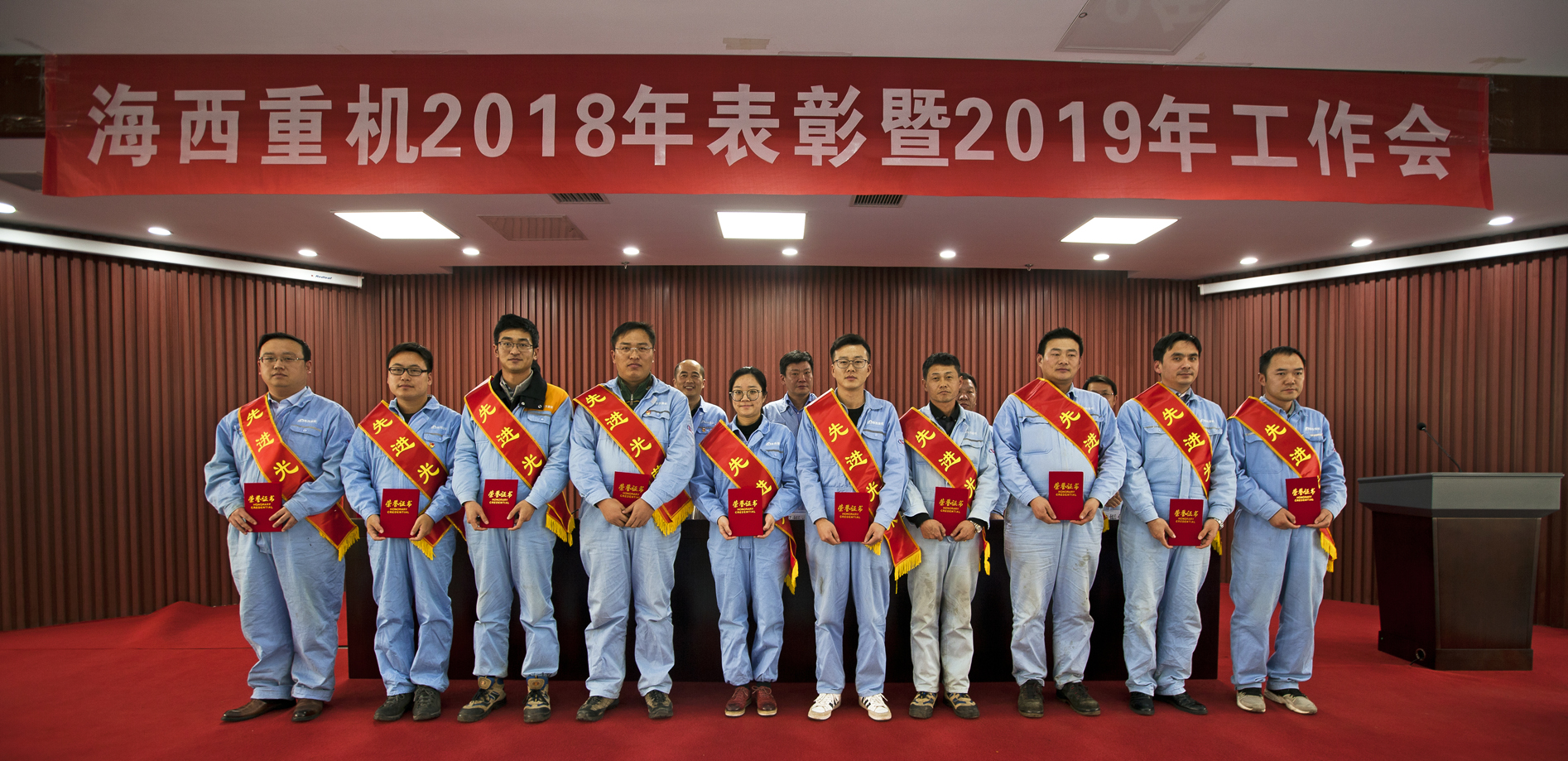 1月19日,海西重機2018年表彰暨2019年工作會在901會議室順利召開,公司主管及以上管理人員、2018年度優秀管理者、優秀員工參加會議,公司黨委書記、董事長鄧振山主持會議。