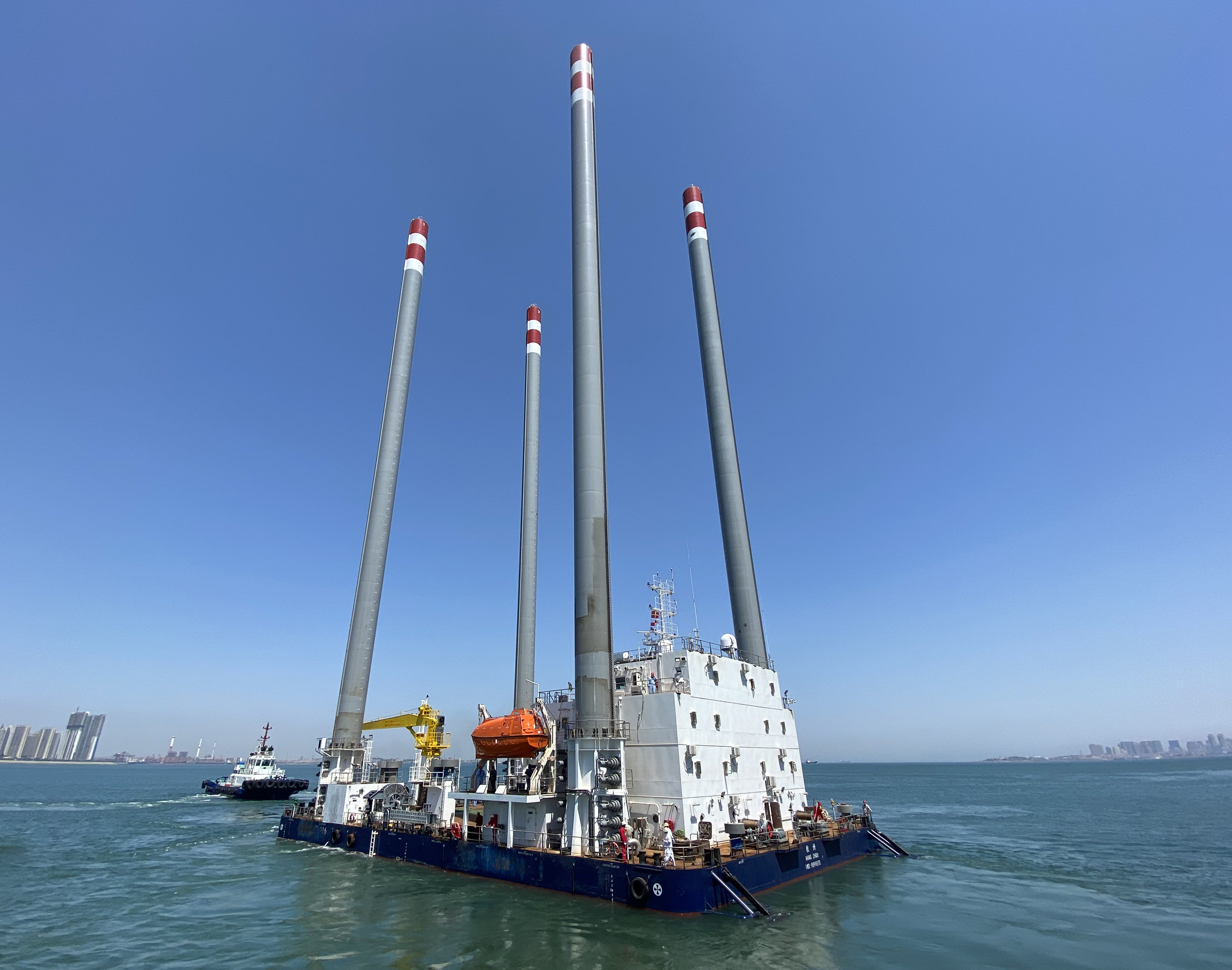 平臺采用電動齒輪齒條升降系統,由平臺主體、樁腿(帶樁靴)、升降系統、推進系統、DP-1動力定位系統和錨泊定位系統等部分組成,主要用于海上風電建設及海洋水工地質勘測,包括鉆探、取樣、原位測試、土工試驗等全作業流程,具備高精度動力定位功能,能實現一次樁位同時完成多孔鉆探與土層分析,是國內目前最高效的勘探試驗平臺之一,其技術水平達到國際先進水平。
