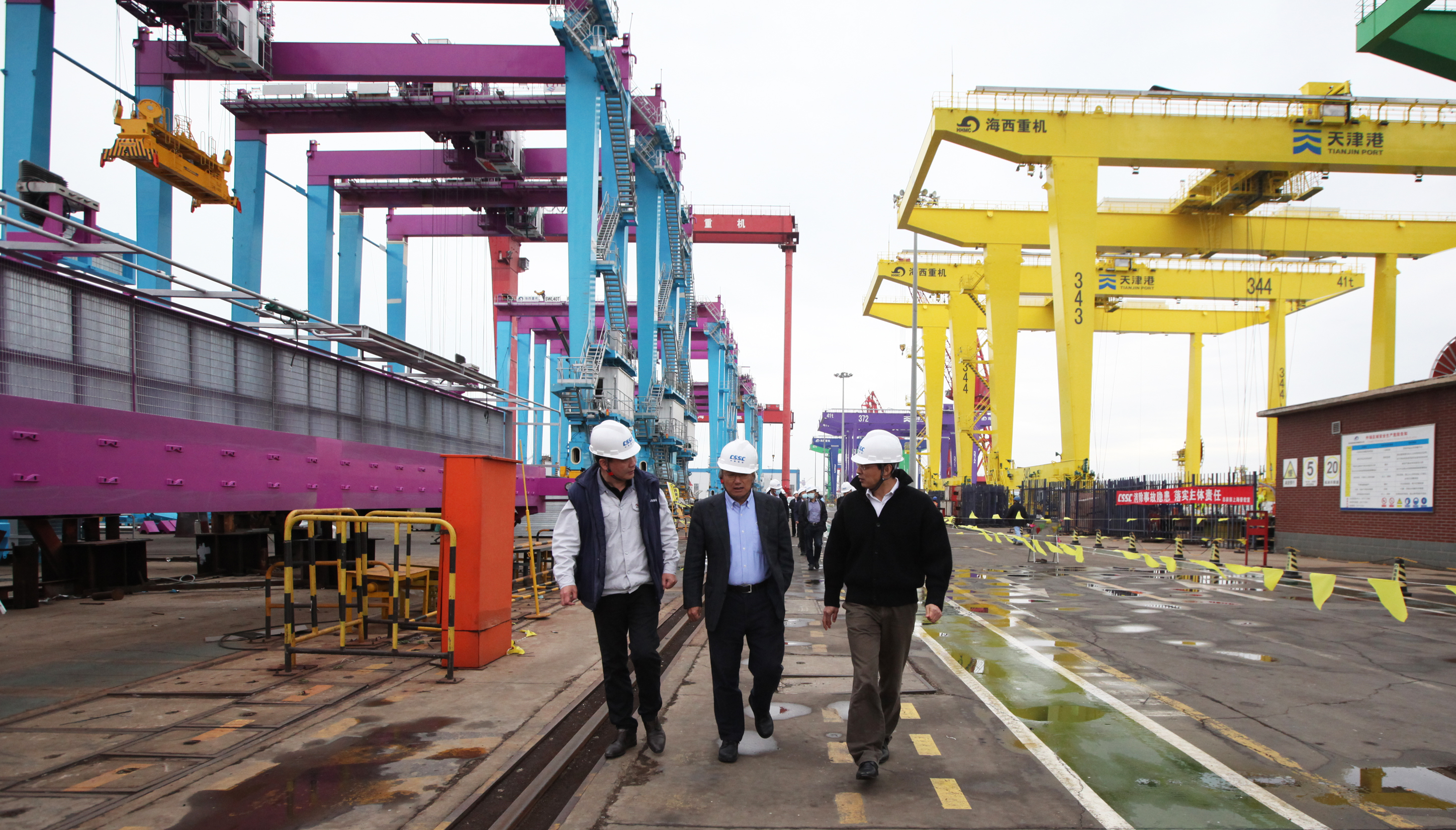 王偉一行參觀了海西重機設備生產現場,了解海西重機在自動化碼頭設備及系統集成方面的技術研發情況,對項目推進情況表示肯定,希望雙方深入貫徹落實習近平總書記視察天津港重要指示精神,齊心協力打通項目交付最后一公里,在自動化碼頭建設方面廣泛合作,贏得驕人成績。