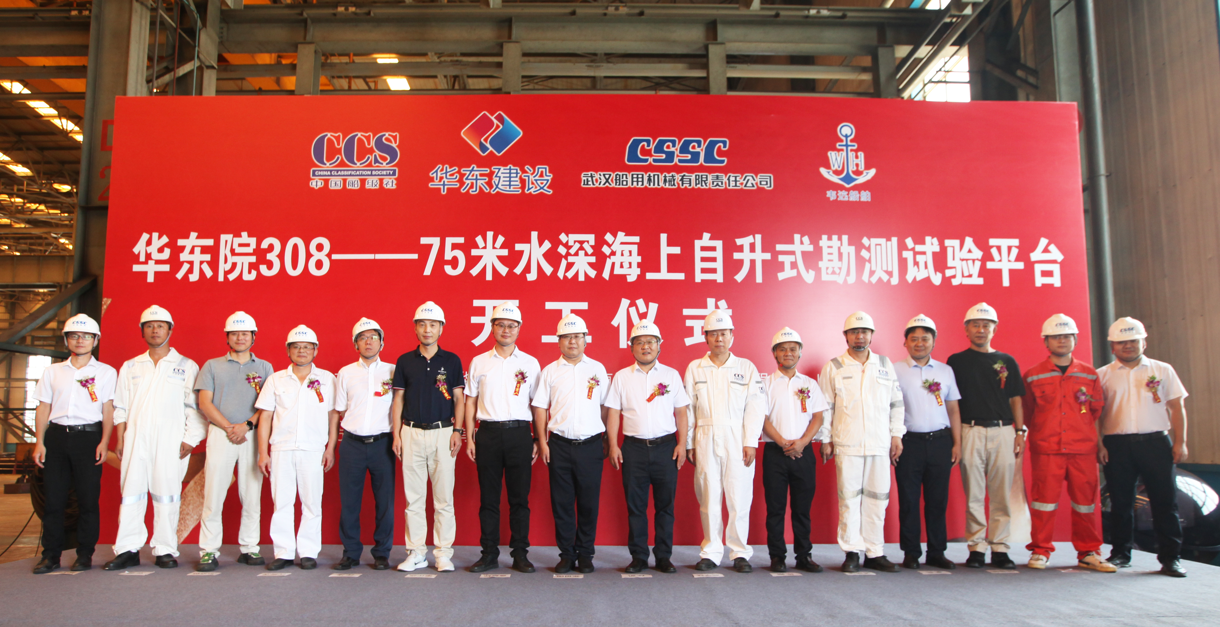 8月26日,中國船舶集團旗下武漢船機海西重機公司承建的華東院308——75米水深海上自升式勘測試驗平臺順利開工。浙江華東建設工程有限公司、中國船級社青島分社、杭州逸秀船舶技術服務有限公司、上海韋迒船舶科技有限公司、中國船舶工業貿易有限公司、武漢船用機械有限責任公司、青島海西重機有限責任公司代表出席儀式。