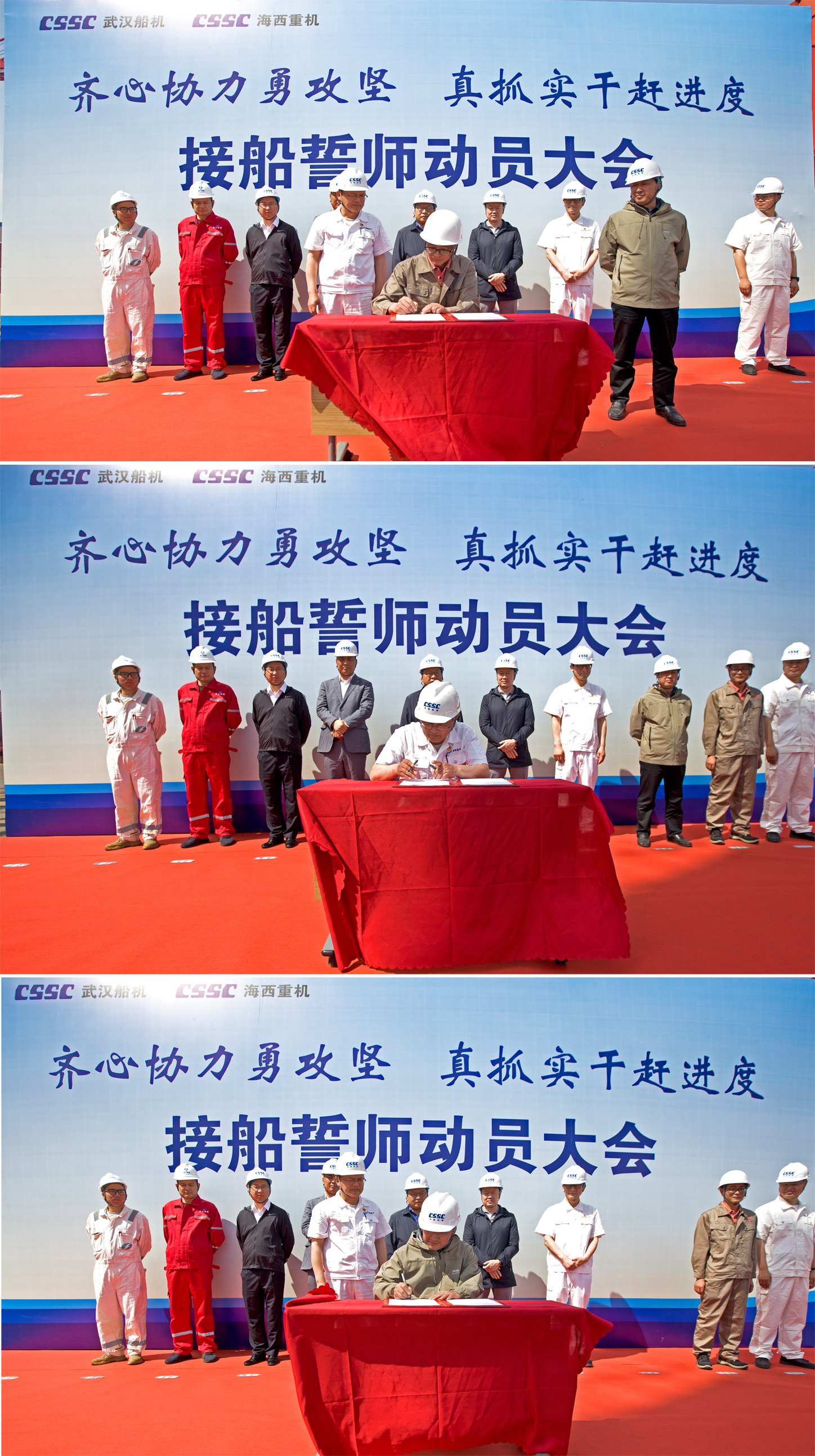 為了明確目標、凝聚共識、齊心協力、克難攻堅,亮明迎難而上的堅定信心和堅強決心,動員全員上下持續營造濃厚干事氛圍,掀起“齊心協力勇攻堅,真抓實干趕進度”的高潮,全力以赴打好海工項目集中攻堅戰,5月25日上午,中國船舶集團旗下武漢船機海西重機公司在生產現場組織開展接船誓師動員大會。華夏金融租賃有限公司、北京神大集團有限公司、飛勵特船舶管理有限公司、大津重工泰州分公司、江陰雙馬重工裝備有限公司、武漢船機海西重機等相關方參加本次動員大會。
