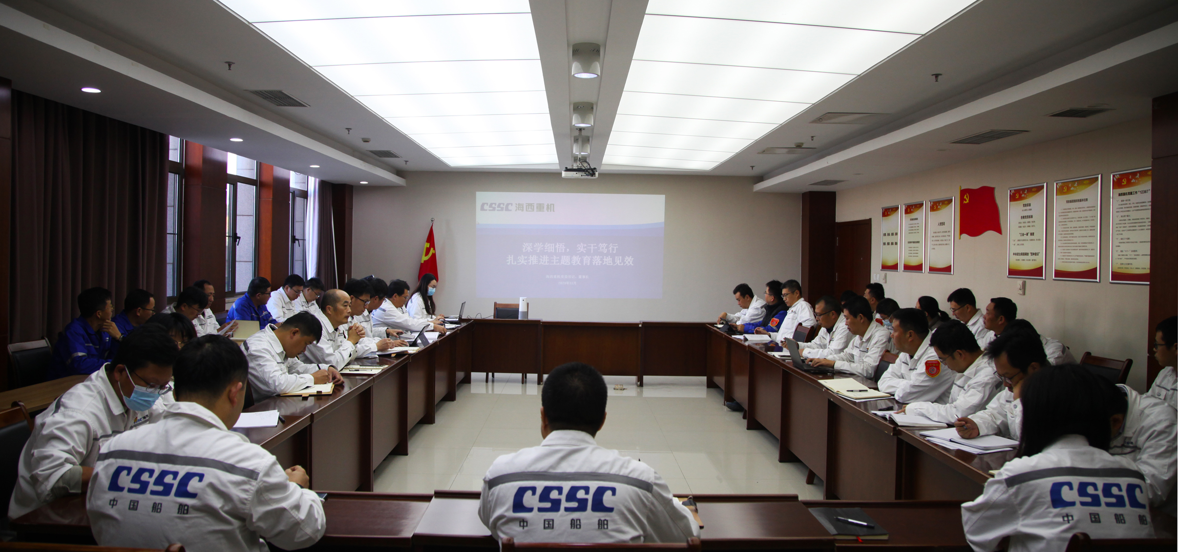 11月6日,中國船舶集團旗下武漢船機海西重機公司黨委書記、董事長李儒新為中層以上管理人員講授“深學(xué)細悟,實干篤行扎實推進主題教育落地見效”主題教育專題黨課。