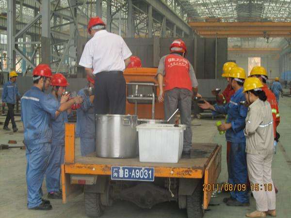 驕陽似火,酷暑難耐,8月9日,青島迎來入伏以來第一個高溫天氣。公司領導心系一線職工,為保障職工的身體健康,確保一線職工全身心投入到安全生產工作中。日前,公司組織職工餐廳開展 “夏季送清涼活動”——每天給職工送綠豆湯作為消暑用品,在炎炎夏日給堅守崗位的職工送上了絲絲涼意。并要求食堂多安排如冬瓜、苦瓜等具有清熱解毒功效的食物,確保全廠職工安全過暑。