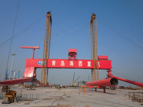 由青島海西重機自主設計、建造和使用的1600T大型龍門式起重機于2012年11月23日順利提升。
