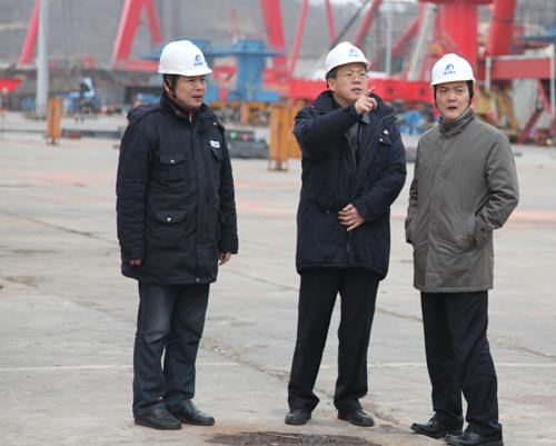 王重秋一行在集團公司、武漢母公司等相關領導的陪同下參觀和考察了公司部分生產車間、發運碼頭及組裝現場,認真聽取了海西重機黨委書記孫國慶在落實發展戰略,以及產品的技術研發、生產和后續發展規劃等方面的匯報。