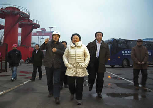 高層專家團實地考察了海西重機即將出口的90米自升式功能性海洋平臺、整機待發(fā)往意大利的超巴拿馬大型岸橋項目等。并聽取了公司副總經(jīng)理朱聲凱關(guān)于公司以抓住發(fā)展海洋經(jīng)濟、走向深藍為機遇,“港口機械與海工產(chǎn)品并重”發(fā)展的匯報,以及青島市科協(xié)對促進海西重機科技人才培養(yǎng),提高公司技術(shù)創(chuàng)新水平,幫助公司做大做強提供了重大智力支持,成為海西重機“科技興企”的又一支重要力量。并在科協(xié)的大力支持下,公司與侯保榮院士、陳蘊博院士帶領(lǐng)團隊,成立“院士工作站”,嫁接企業(yè) ,助力公司騰飛的匯報。